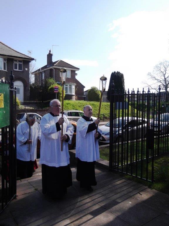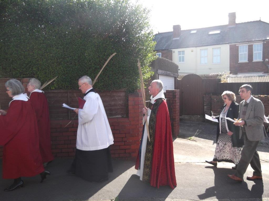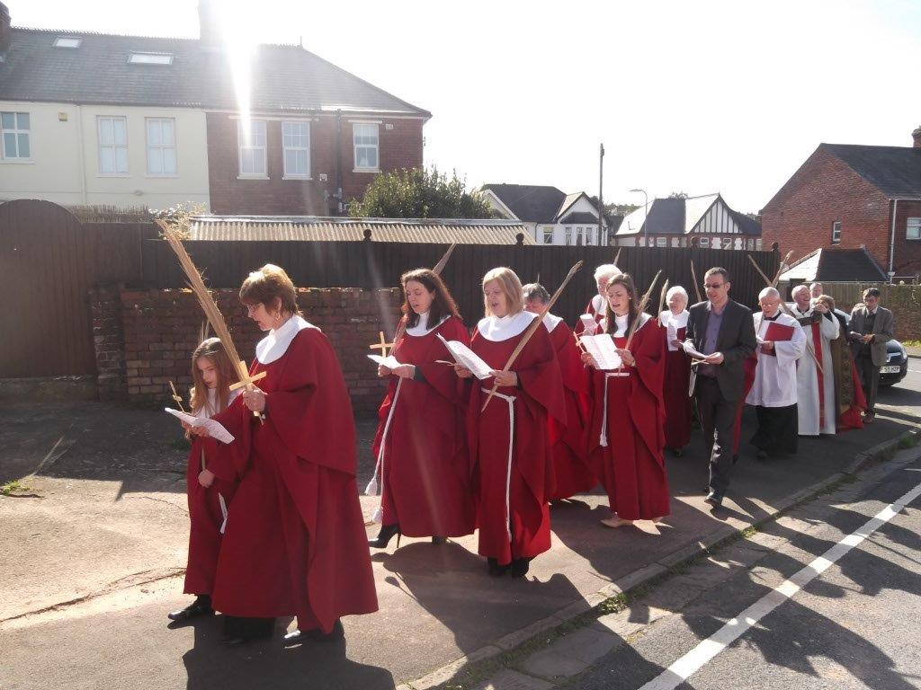 A glorious spring day for a Procession of Palms around our local community, singing Hosanna to the King of Kings! Then back to church for the Passion Narrative and celebration of the Mass on this first day of Holy Week.